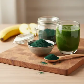 - Spirulina w proszku: odpowiednia do smoothie, jogurtu, owsianki, past kanapkowych; smak jest najbardziej wyrazisty.
